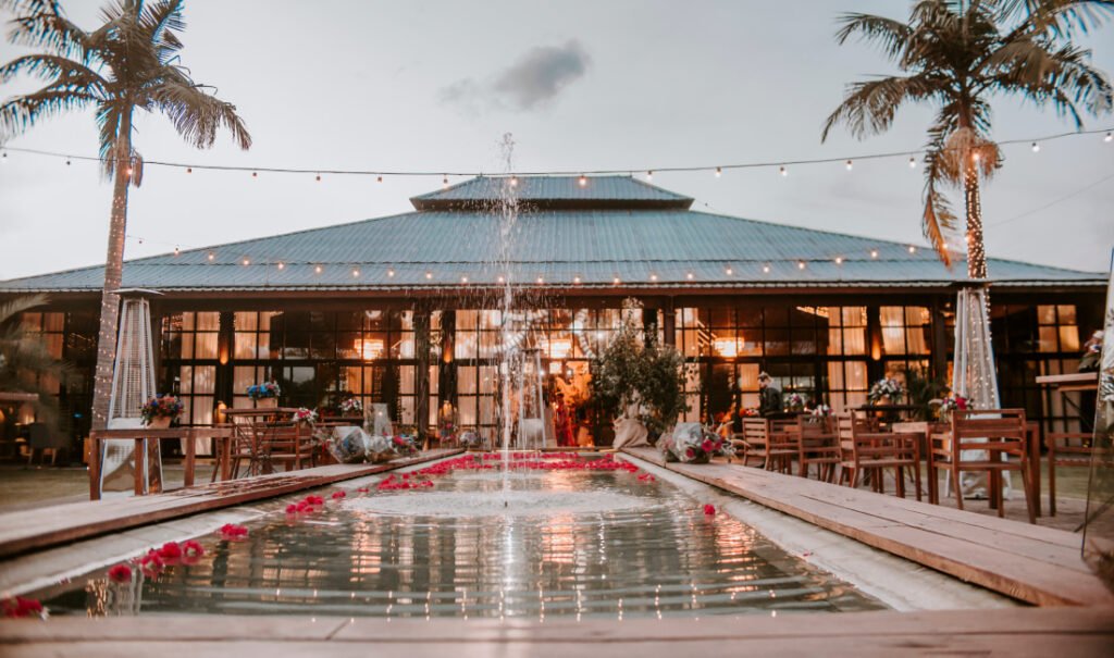 For couples dreaming of an exotic, resort-style wedding, Casa Bali by Zona E delivers a unique atmosphere inspired by Balinese architecture and design. This venue, located just outside Medellín, is surrounded by palm trees, gardens, wooden structures, and tranquil water features that create a serene and luxurious ambiance.