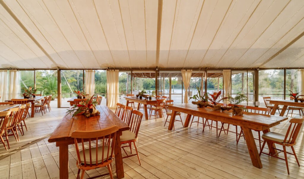 Built with sustainable principles at its core and surrounded by native forest, Cannúa provides space for ceremonies, receptions, and guest accommodations. This makes it ideal for intimate weddings focused on connection and intentional living for up to 100 guests.