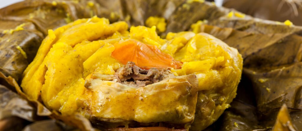 Tamales are a beloved traditional food across Colombia, with the tamal tolimense being one of the most iconic versions. Made from corn dough filled with chicken, pork, rice, carrots, peas, and spices, the mixture is wrapped in banana leaves.