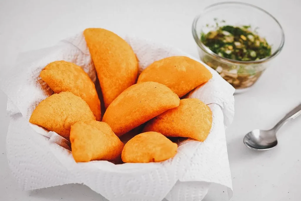 Colombian empanadas are crispy, deep-fried snacks made from corn dough rather than wheat. They are typically filled with seasoned meat, potatoes, or a combination of both, making them a staple of street food throughout the country.