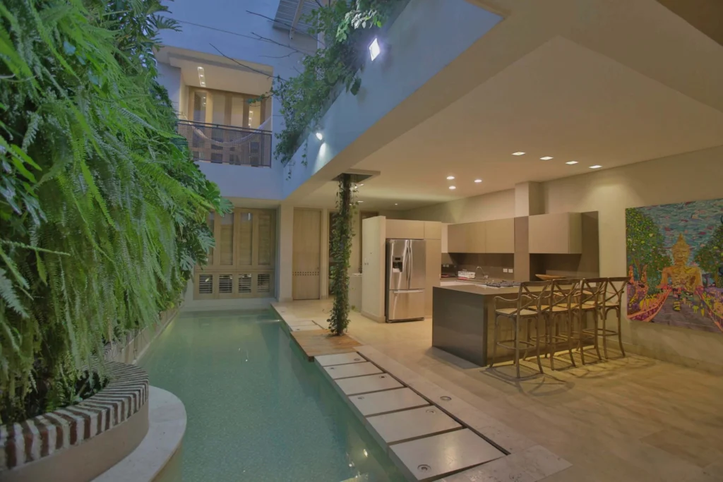 Disfrute de esta hermosa casa de lujo con 3 habitaciones; pueden dormir hasta 6 personas. Situado en el corazón de la ciudad vieja de Cartagena de Indias, a sólo una cuadra de plazas, supermercados, bares y restaurantes.