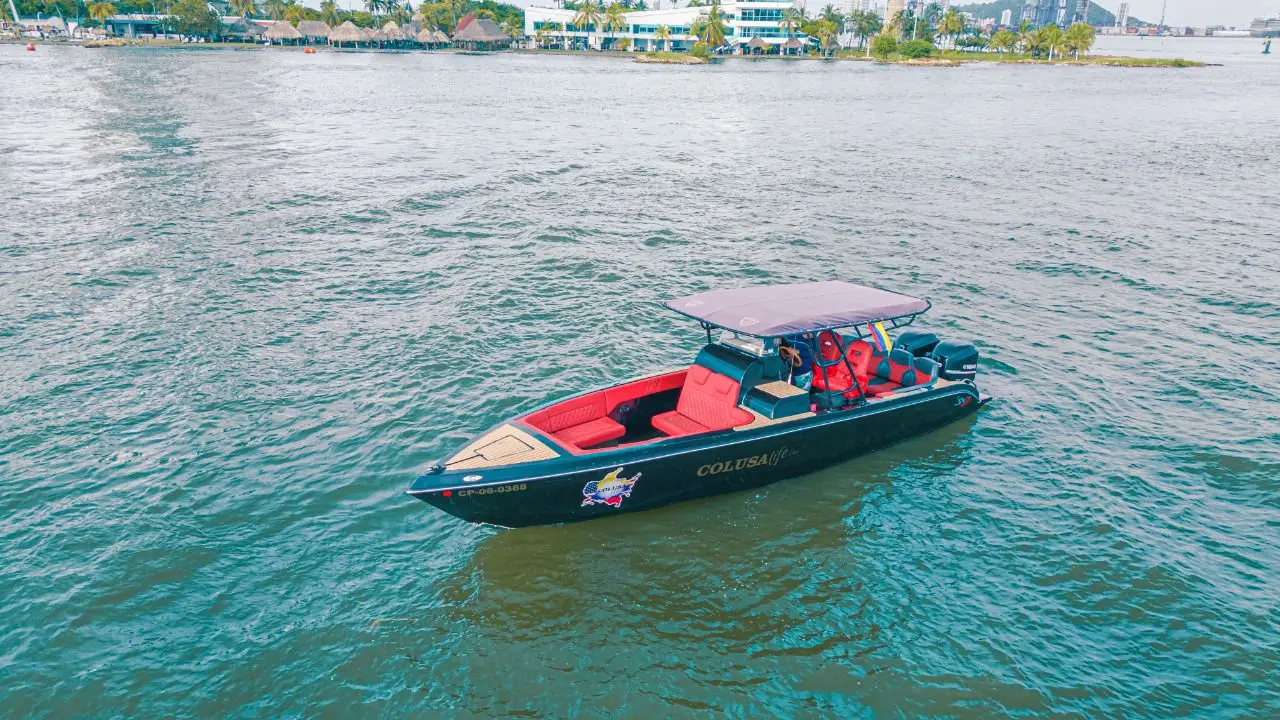 Suba a bordo de La Piscina II, una magnífica embarcación de 34 pies con capacidad para 14 personas que buscan una escapada acuática sin igual. Disfrute de la comodidad de un cuarto de baño a bordo, lo que garantiza la comodidad durante todo el viaje. Sumérjase en el ritmo de las aguas de Cartagena mientras disfruta de una conectividad perfecta con el avanzado sistema estéreo Bluetooth. Navegue con estilo y comodidad, creando momentos inolvidables y abrazando la esencia de la relajación a bordo de este elegante y espacioso barco.