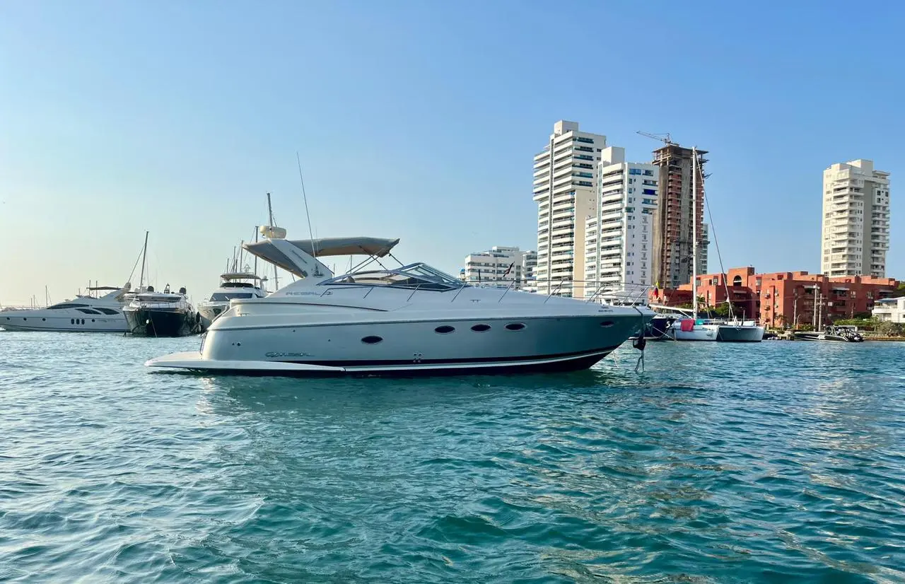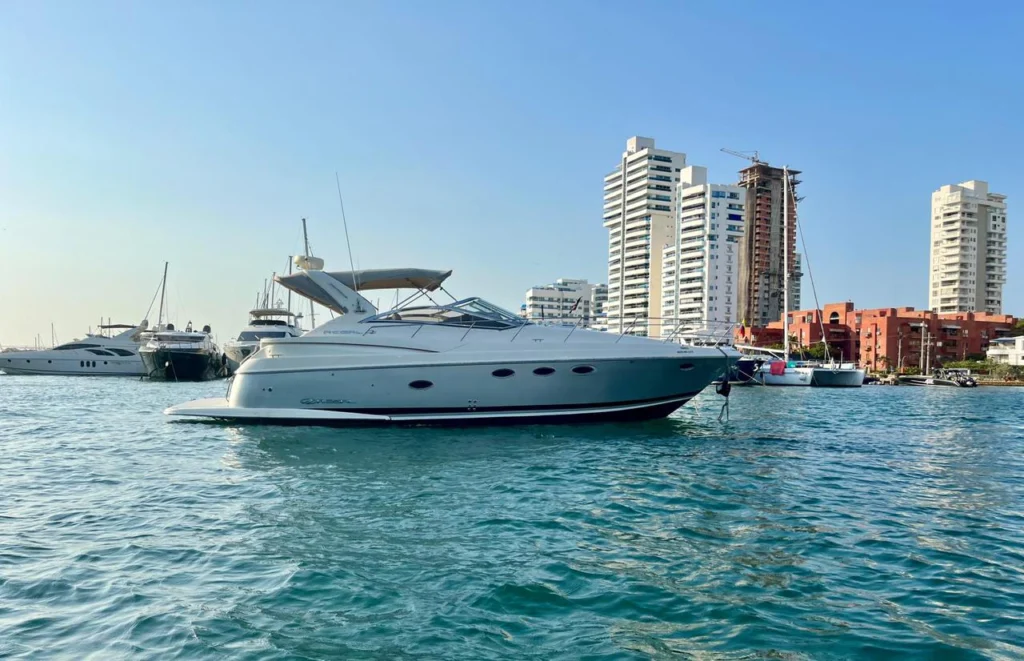 Este elegante yate de 41 pies, Taimados, es perfecto para un máximo de 12 personas, con 2 cómodas habitaciones y 2 baños modernos. Con su elegante diseño y potente motor, Taimados asegura un viaje rápido y sin problemas a destinos como Cholón o las Islas del Rosario, por lo que es una opción superior para el alquiler de barcos en Cartagena. Las zonas interiores son acogedoras y están bien ventiladas, mientras que los espacios exteriores son amplios y están diseñados para tomar el sol y socializar.