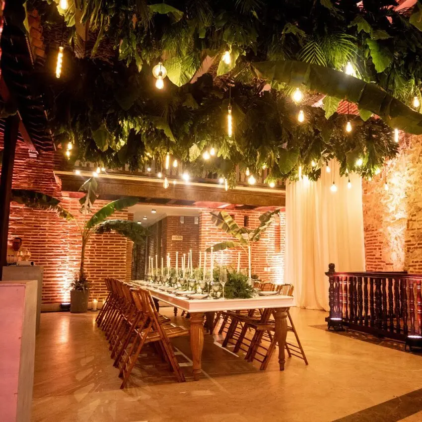 Nestled in the heart of Cartagena’s vibrant Getsemaní neighborhood, Casa Santos de Piedra is a captivating colonial venue that seamlessly blends historic charm with modern elegance. Its beautifully preserved architecture—featuring handcrafted iron chandeliers, arched brickwork, and marble accents—creates a romantic ambiance reminiscent of Cartagena’s rich heritage.