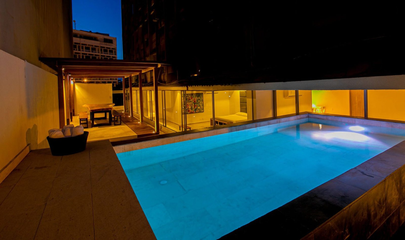 This full floor apartament was recently renovated and is right in the heart of central Cartagena. Its 7 bedrooms and 7 baths can comfortably host up to 14 guests, making it just the right fit for groups. Enjoy your vacation in this property, either looking at the amazing view of the city from the terrace, taking a dip in the pool or tasting amazing meals cooked by the staff included with this home.